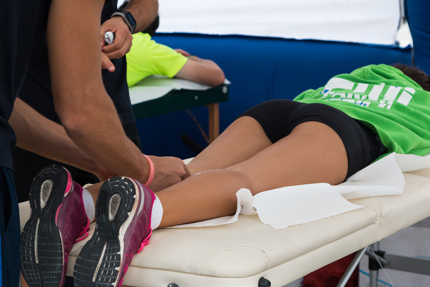 リカバリーオイル運動後、体を流したタイミングでお尻から下に薄く塗り伸ばして頂ければOKです。